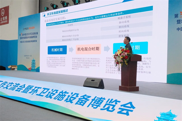 La forumul principal al expoziției, Zhang Zhihong, vicepreședinte al Skyworth Automotive Design Institute și director al liniei de produse speciale pentru vehicule, a împărtășit informații despre industrie. El a subliniat că șasiurile vehiculelor de salubritate suferă o transformare profundă de la mecanic la inteligent și că nucleul viitorului șasiu inteligent se află în electrificare, integrare și inteligență. Această tendință se aliniază îndeaproape cu calea de dezvoltare tehnologică a Skyworth Auto, punând o bază solidă pentru ca noi să conducem noua eră a salubrității energetice.